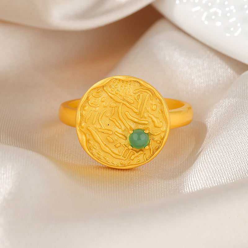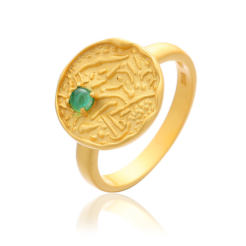 5A Freshwater Pearl 4-4.5mm Accent Solitaire Pattern Coin Matt 18K Gold Tone Solid 925 Silver Disc Ring