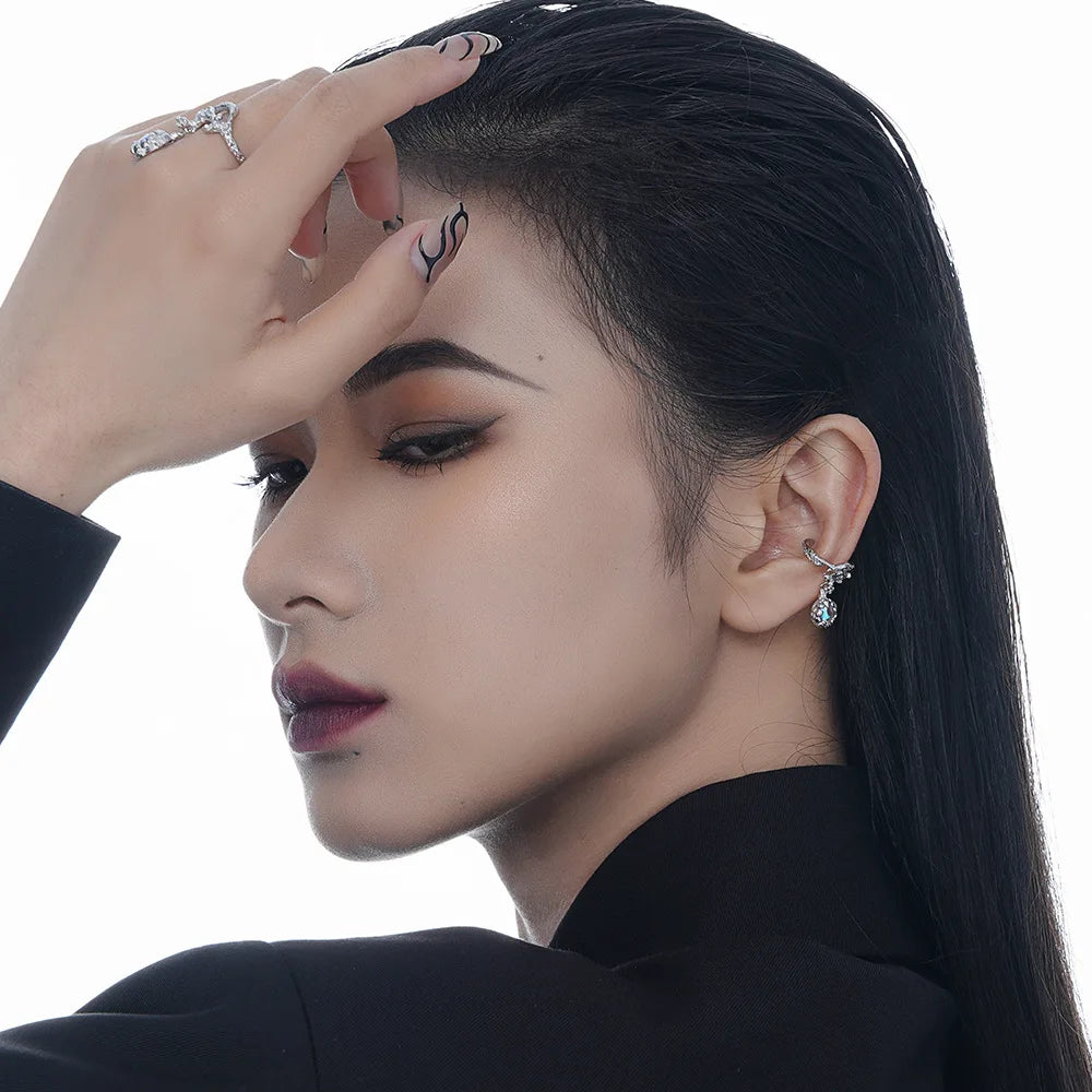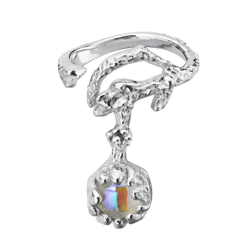 The textured and fluid patterns provide a unique look that will stand out amongst other jewelry pieces. The addition of the AB color stone element adds a classic yet trendy touch to the design.