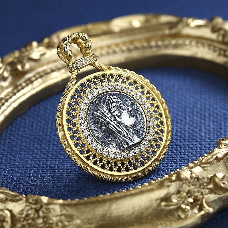 Arsinoe II Greek Coin Replica 18K Gold Over Sterling Silver Pendant