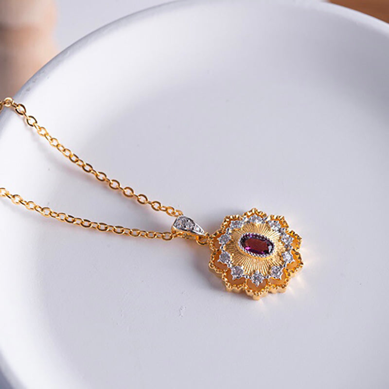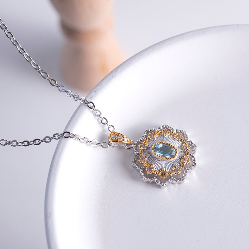 Floral Fretwork Gemstone Necklace 6474 in Sterling Silver