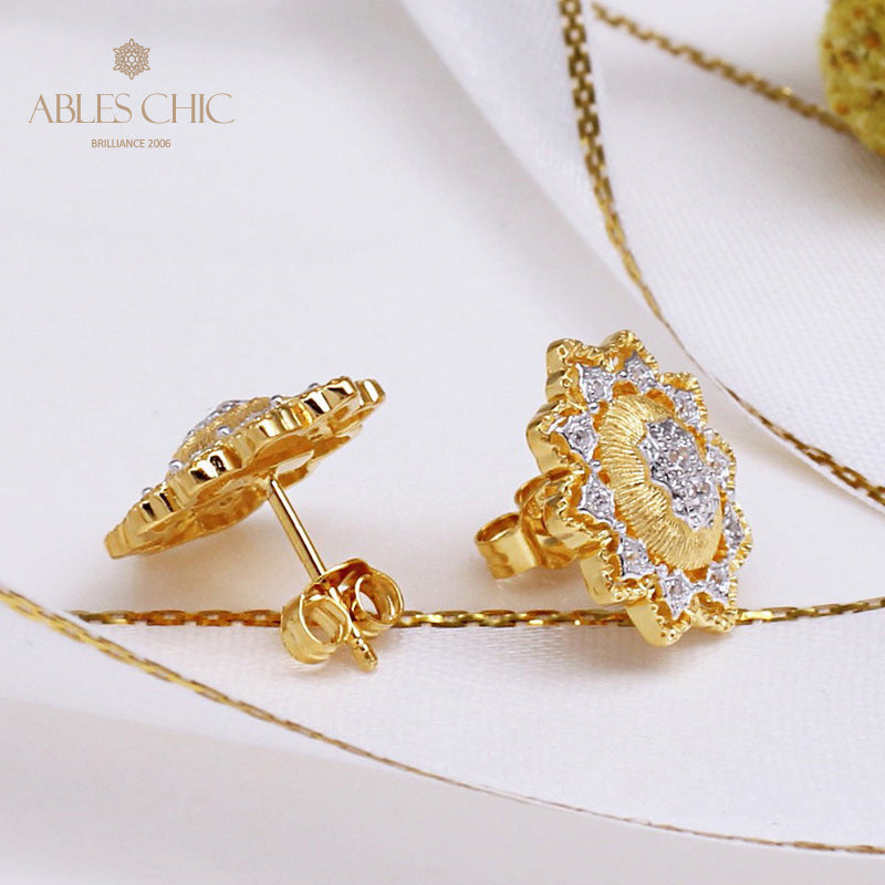 Fretwork Blossoms Flower Earrings 5262 in Sterling Silver