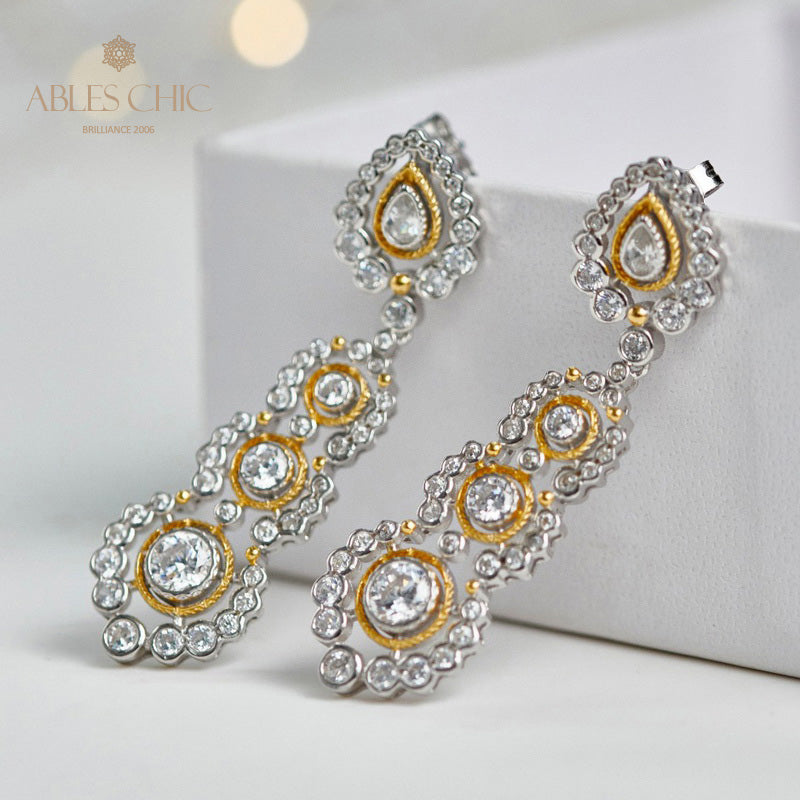 Halo Floral Chandelier Earrings 6019 in Sterling Silver