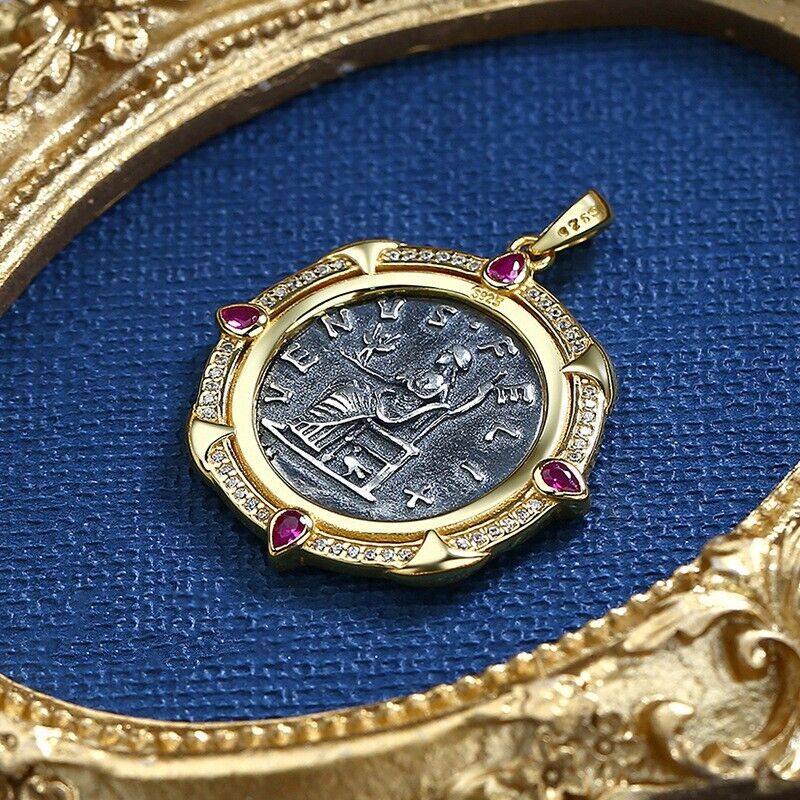 Queen Crispina Greek Coin Replica 18K Gold Over Sterling Silver Pendant N1008