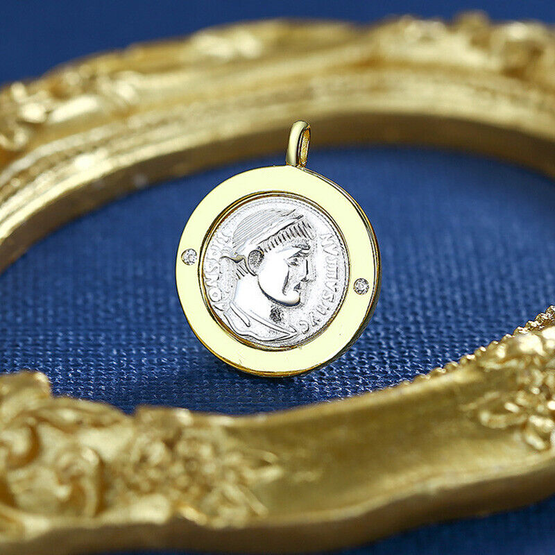 Roman Deity Greek Coin Replica 18K Gold Over Sterling Silver Pendant N1037