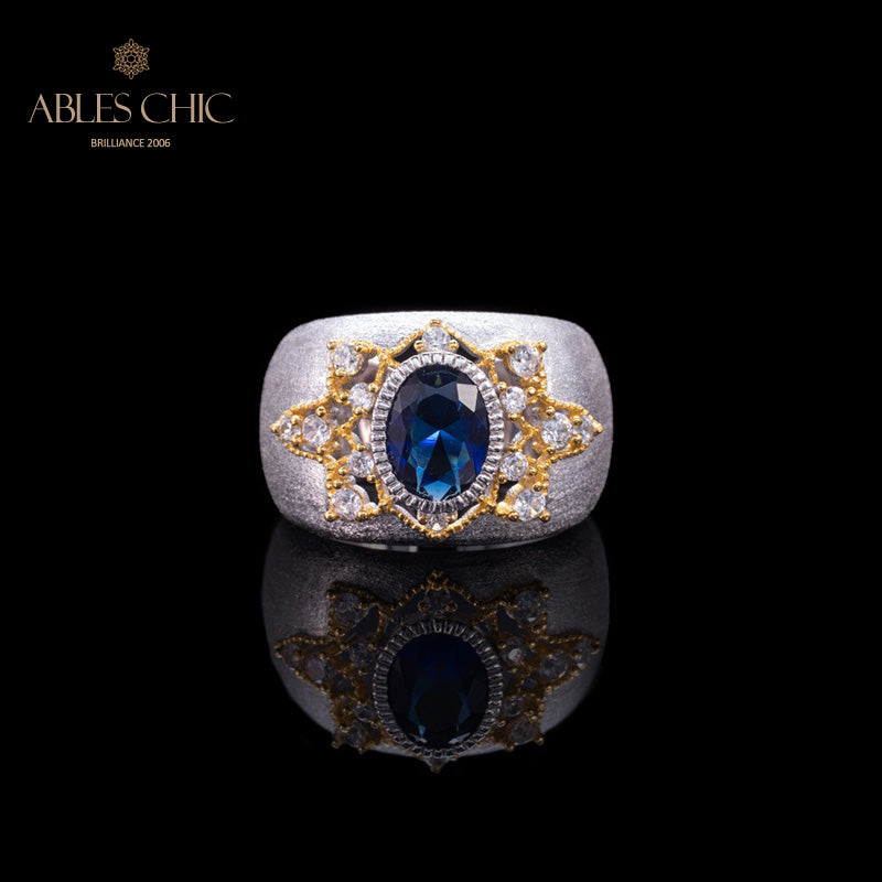 Sapphire Flower Silky Ring 6065 in Sterling Silver