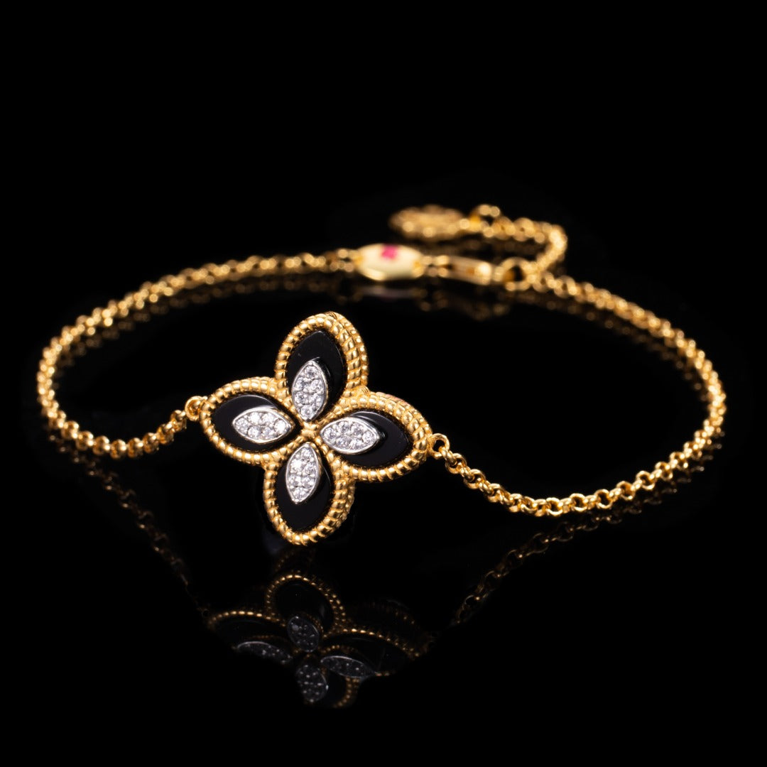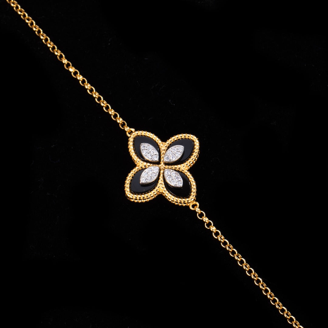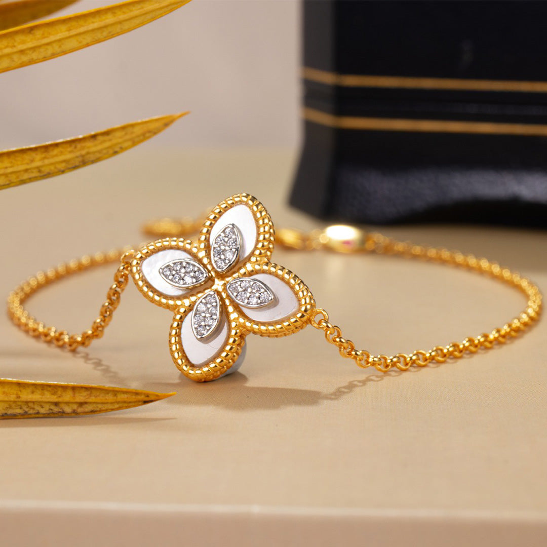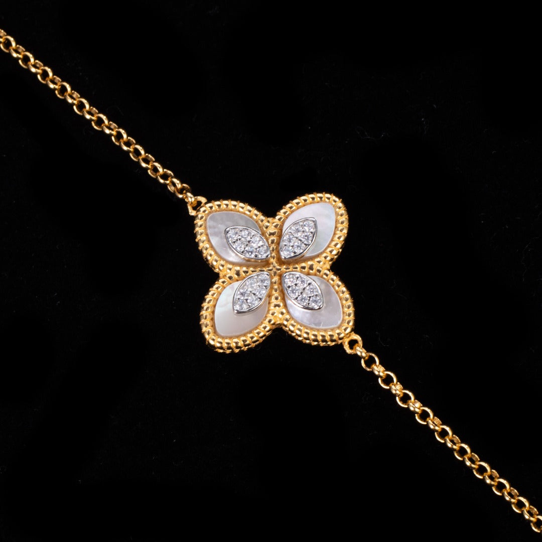 Shell Agate Clover Bracelet 6168 in Sterling Silver