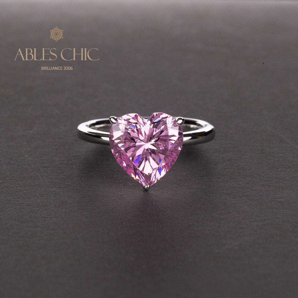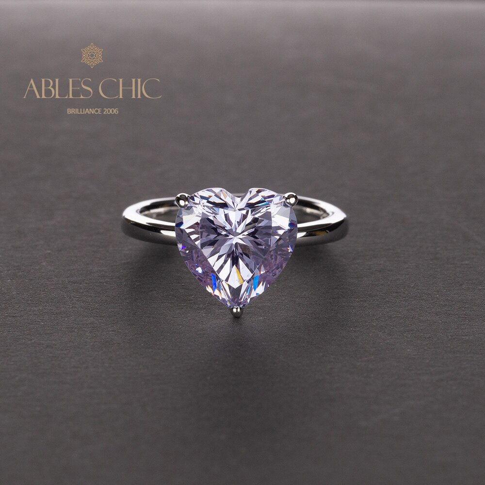 Solitaire Heart Kunzite Bridal Ring R0308 in Sterling Silver