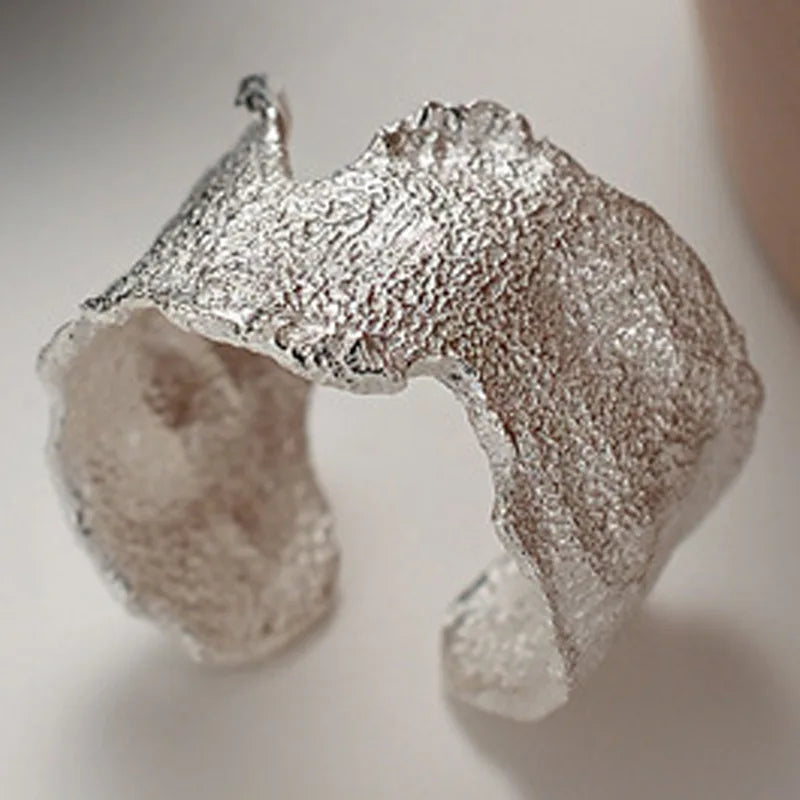 Wide Sanded Impressionist Ring R129 in Sterling Silver