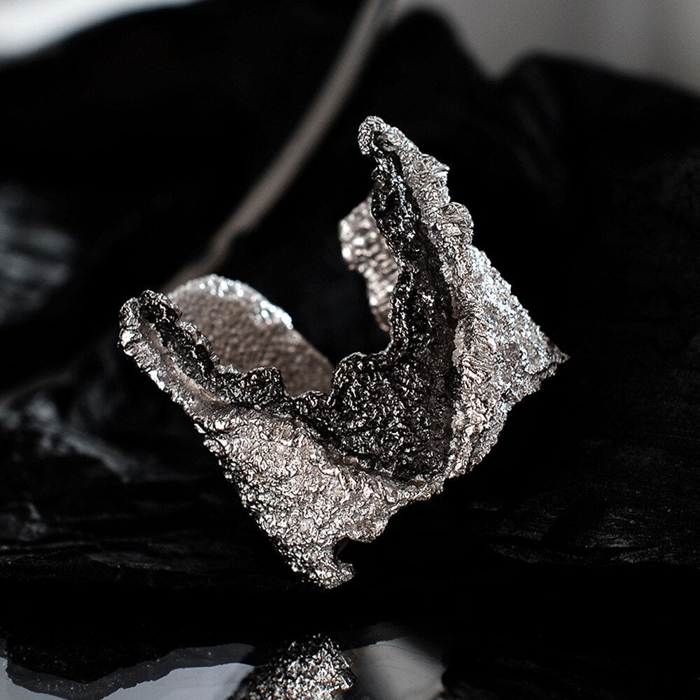 Wide Two-tone Rugged Element Ring R1196 in Sterling Silver